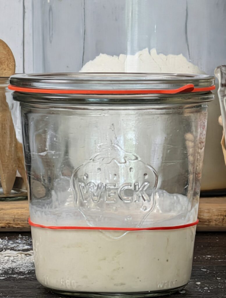 - If it is cold in your kitchen you can place the starter jar above the refrigerator where it tends to be warmer or you can place it in a pre-warmed oven (75-80 F), just remember to turn the oven off after heating!